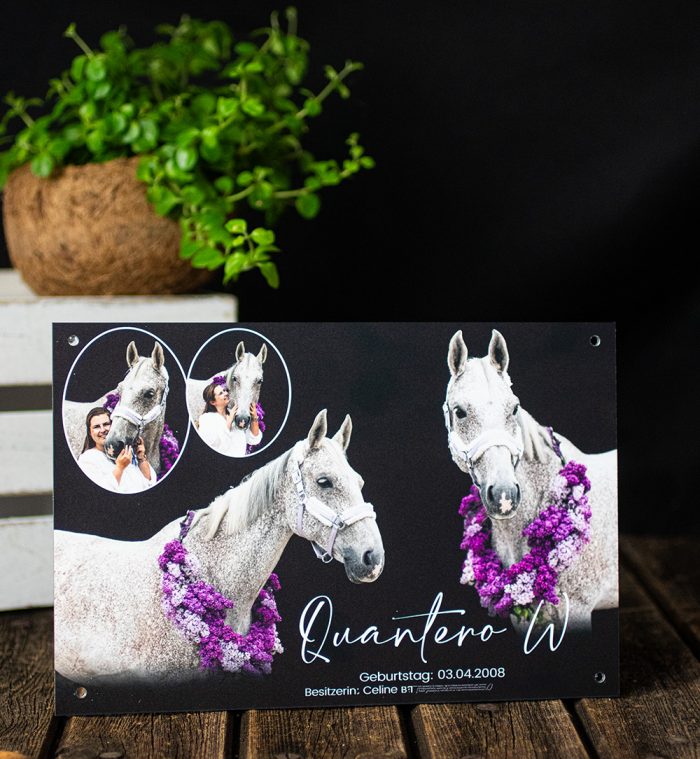 Jedes unserer Schilder wird individuell angefertigt und genau nach deinen Wünschen gestaltet. So hälst du am Ende dein Traum Boxenschild in den Händen. Deinen Vorstellungen sind fast keine Grenzen gesetzt.
