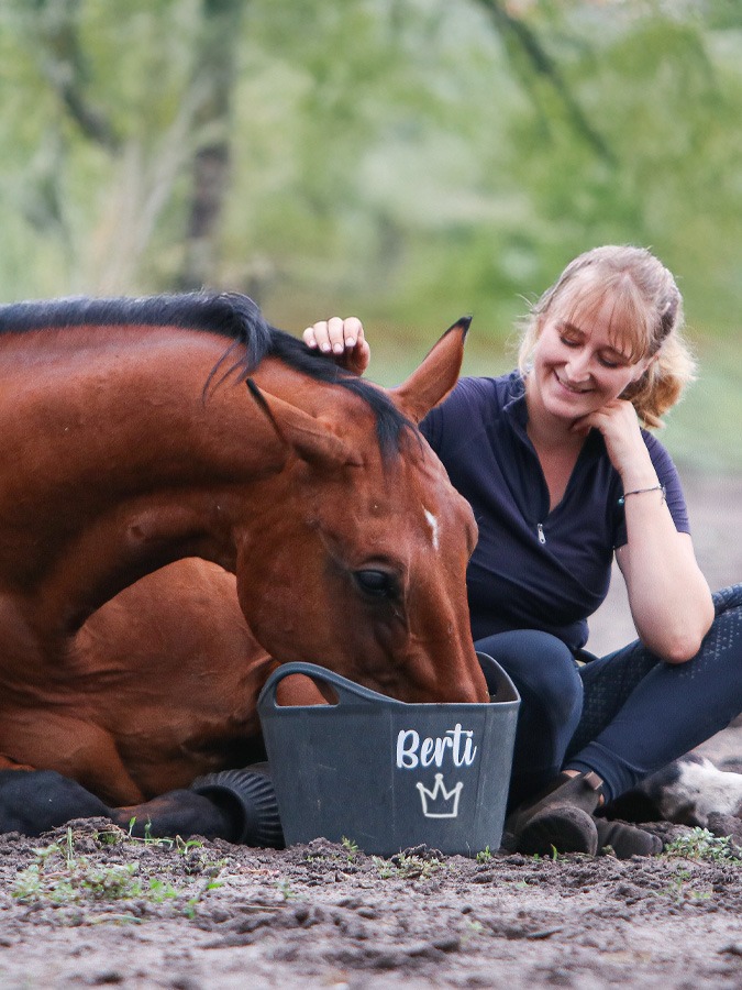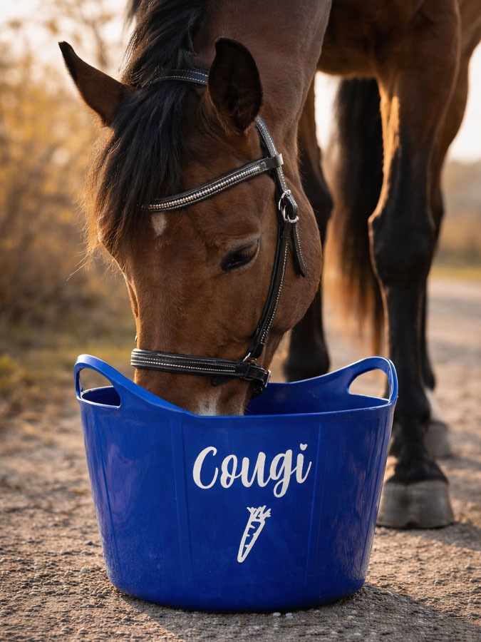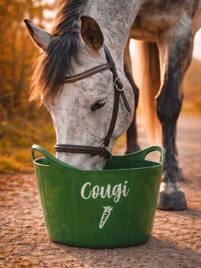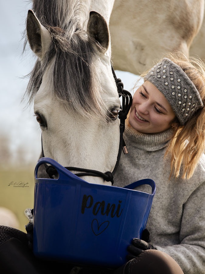 Du möchtest, dass deine Futterschüsseln im Stall nie wieder vertauscht werden? Dann sind unsere neuen Futterschüsseln mit individuellem Sticker genau das richtige für dich. Unsere Flexischale fasst 17 Liter und eignet sich dadurch perfekt zum Einweichen von Schlabbfutter, Heucobs oder Mash. Die Schale ist stabil und trotzdem sehr weich, so dass sich dass Pferd beim Fressen mit der Schale auch nicht verletzen kann.