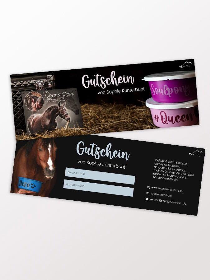 Dir gefallen meine kunterbunten Produkte und du möchtest gern individuelle Artikeld verschenken? Dir fehlen die passenden Fotos und du weißt nicht, welches Design der Beschenkte am Schönsten finden würde. Dann verschenke doch einfach einen unserer Gutscheine. Den Gutschein Wert kannst du auswählen und der Gutschein wir dir dann postalisch innerhalb von 2-3 Werktagen zugeschickt.