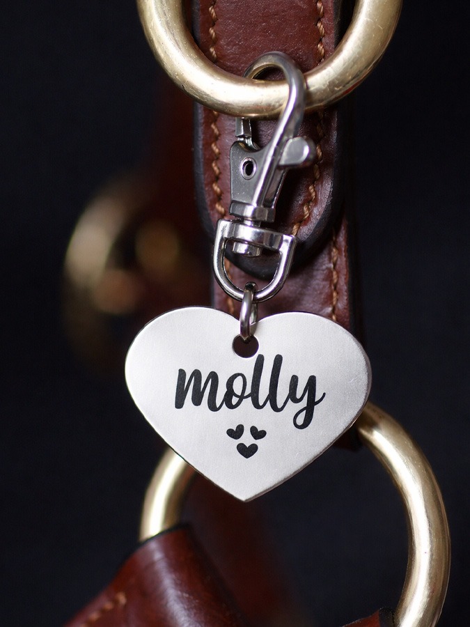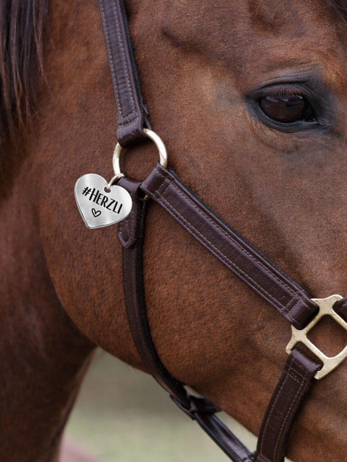 Unsere individuellen Halftermarken vereinen Funktionalität und Persönlichkeit in einem einzigartigen Design. Jede Marke wird speziell für dich angefertigt: Du kannst den Namen deines Pferdes (z. B. Hirschi) und ein Sonderzeichen deiner Wahl (z. B. Herz, Karotte oder Hufeisen) angeben.