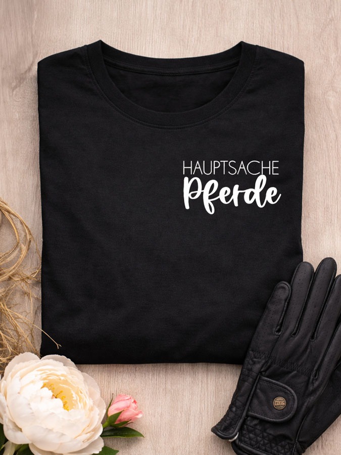 Mit dem auffälligen Aufdruck „Hauptsache Pferde“ setzt du ein klares Statement: Dein Herz schlägt für Pferde! Kombiniere modischen Stil mit Funktionalität – für ein Outfit, das dich jeden Tag begleitet.