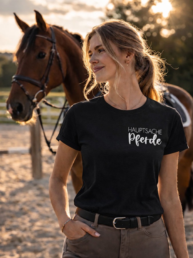 Zeige deine Liebe zu Pferden mit unserem T-Shirt „HAUPTSACHE Pferde“ – dem idealen Begleiter für deinen Stallalltag und entspannte Stunden in der Freizeit. Der leicht taillierte Schnitt aus 100 % gekämmter Baumwolle sorgt für einen perfekten Sitz und ein angenehm weiches Tragegefühl – selbst an langen Tagen im Reitstall oder unterwegs.